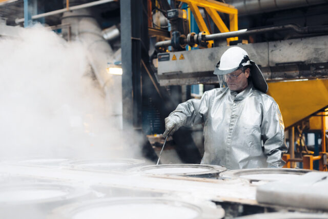 Sterneküche ist kein Wort, das einem als Erstes in den Sinn kommt, wenn man durch die Hallen der LEICHTMETALL Aluminiumgießerei Hannover geht. Feiner Staub liegt in der Luft, es riecht nach Metall. Riesige Gießtische stehen bereit, um das geschmolzene Aluminium in Kokillen zu leiten, deren Umfang breiter sein kann als jeder Großküchenkochtopf. Direkt hinter der Gießbühne stehen an einer Wand drei gut sechs Meter hohe Homogenisierungsöfen, die bis zu 60 Tonnen Aluminium fassen. Das Metall wird darin bis zu 120 Stunden bei um die 500 Grad Celsius kontrolliert aufgeheizt, wärmebehandelt und kontrolliert abgekühlt. Alles hier atmet geradezu Industrie. Und doch hat die Gießerei mit einem Genusstempel einiges gemeinsam. Vor allem ihr Erfolgsgeheimnis: Höchste Qualität und das permanente Streben nach Perfektion.
