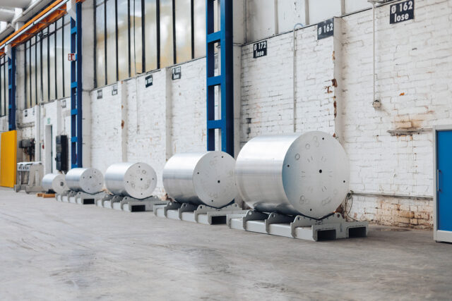 Zum Einsatz kommt das Aluminium von LEICHTMETALL in vielen Anwendungsbereichen. Aufgrund der Eigenschaften vorwiegend in der Luft- und Raumfahrt, zum Beispiel in Form von Hydraulikleitungen oder Teilen, die die Flügel eines Flugzeugs mit dem Rumpf verbinden. Aber auch Hüllen für Satelliten werden aus den Aluminiumrundbarren von LEICHTMETALL gefertigt. »Das Metall ist ideal für den Einsatz im Weltraum«, erklärt Lange. »Zum einen ist es mit einer Zinklegierung so belastbar wie Stahl, aber um ein Vielfaches leichter. Und zum anderen verglüht Aluminium beim Wiedereintritt in die Erdatmosphäre rückstandslos.« Ein Drittel aller von LEICHTMETALL produzierten Rundbarren geht in die Luft- und Raumfahrt, ein Zehntel in den Bereich Defence. Und gut 30 bis 40 Prozent kommen in den Metallhandel. Was genau über diesen Weg mit dem Vormaterial passiert und wer es verwendet, erfahren Lange und seine Kollegen oft nur durch Zufall. Es kann beispielsweise Anwendung im Automotive-Bereich finden, aber auch im Baugewerbe oder im schweren Maschinenbau. Dort zum Beispiel als zentrales Bauteil, damit sich Windkrafträder drehen können.