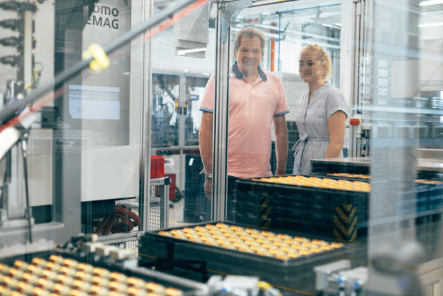 Eine Familie: Felicitas Kirchheim und ihr Vater Klaus in der Produktion des Familienunternehmens.