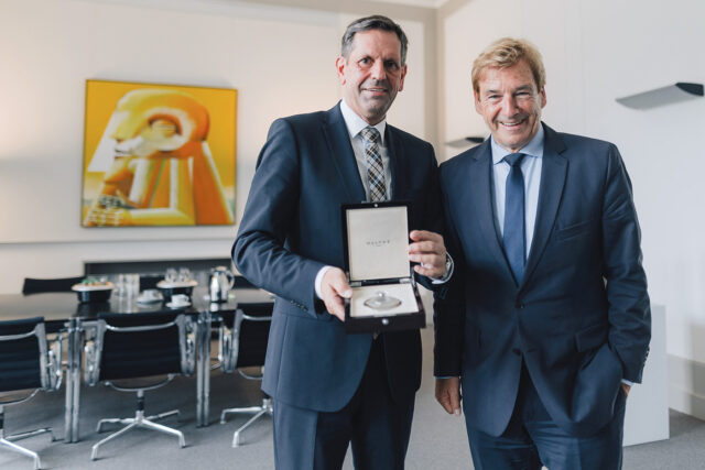 Richtungsweisend: Bei seinem Antrittsbesuch schenkte Dr. Volker Schmidt dem Ministerpräsidenten einen Kompass.