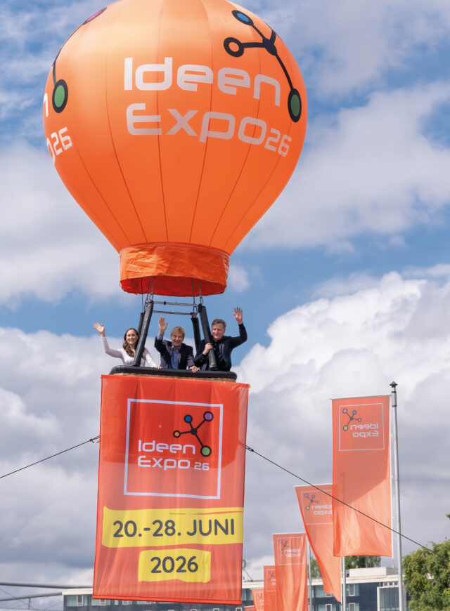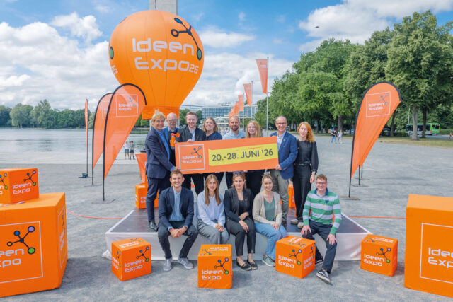 Ein orangefarbener Panorama-Ballon schwebt weithin sichtbar über dem Maschsee in Hannover. Daran befestigt: das Veranstaltungsdatum für die Jubiläumsausgabe der IdeenExpo. Vom 20. bis 28. Juni 2026 wird das Messegelände in Hannover zum zehnten Mal zum größten Klassenzimmer der Republik.