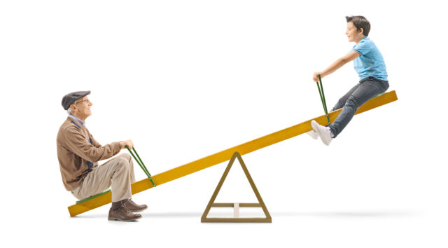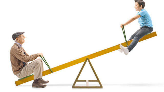 Was sehen Sie auf dem Bild da unten? Opa und Enkel, Alt und Jung, zusammen auf einer Wippe. Harmonie pur, könnte man denken. Doch man kann das Foto auch ganz anders deuten: sinnbildlich – für den Zustand unserer Sozialsysteme. Die Senioren? Haben einen sicheren Platz, denen geht’s gut, da passiert nix. Und die Jungen? Hängen in der Luft, kriegen kein Bein mehr auf die Erde.