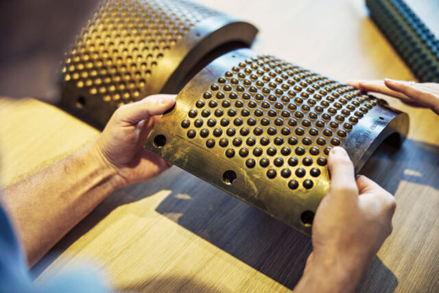 Selbst konstruiert: In den Anfängen prägten die Gründer mit solch einer Walze »Bubbles« in feuchtes Papier.