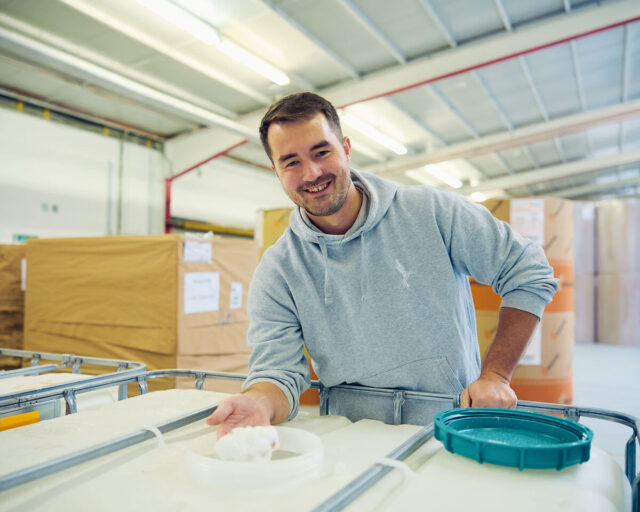 Inzwischen umfasst das Team 14 Personen, davon drei Maschinenführer in der Produktion in Rethem. Vertrieb, Marketing und Finance sitzen in Hannover. Seit Gründung hat das Unternehmen mehr als 500 Kunden beliefert, zehn bis 15 davon bestellen regelmäßig, teils auf Basis fester Rahmenverträge. Einer davon ist Rossmann. Der Konzern hat das neue Logistikzentrum von Anfang an auf den Einsatz von Luftpolsterfolie aus Papier ausgelegt. Denn darin besteht oft eine Hürde für Interessenten: »Die Rollen mit der klassischen Luftpolsterfolie kann man eins zu eins gegen unsere aus Papier tauschen, aber häufig scheitert es daran, dass die Mitarbeiter es komisch finden, statt in Plastikfolie in Papier einzuwickeln.«