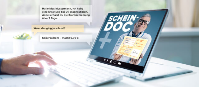 Ein paar Klicks, eine Überweisung per Paypal und fertig ist die Arbeitsunfähigkeitsbescheinigung – ganz ohne Arztbesuch. Internet-Plattformen wie »Scheindoc«, »AU Schein« oder »Medizineu« verkaufen Krankschreibungen als PDF-Download. Was als moderne Dienstleistung gegen überfüllte Wartezimmer daherkommt, entpuppt sich auf den zweiten Blick als potenzielle Beihilfe zum Arbeitszeitbetrug durch falsche Krankmeldung. Mithilfe juristischer Tricks halten sich die Anbieter schadlos, während ihren Kunden im schlimmsten Fall eine fristlose Kündigung oder eine Anzeige wegen